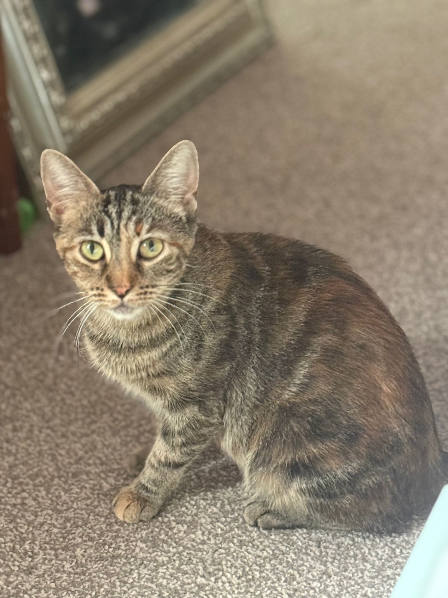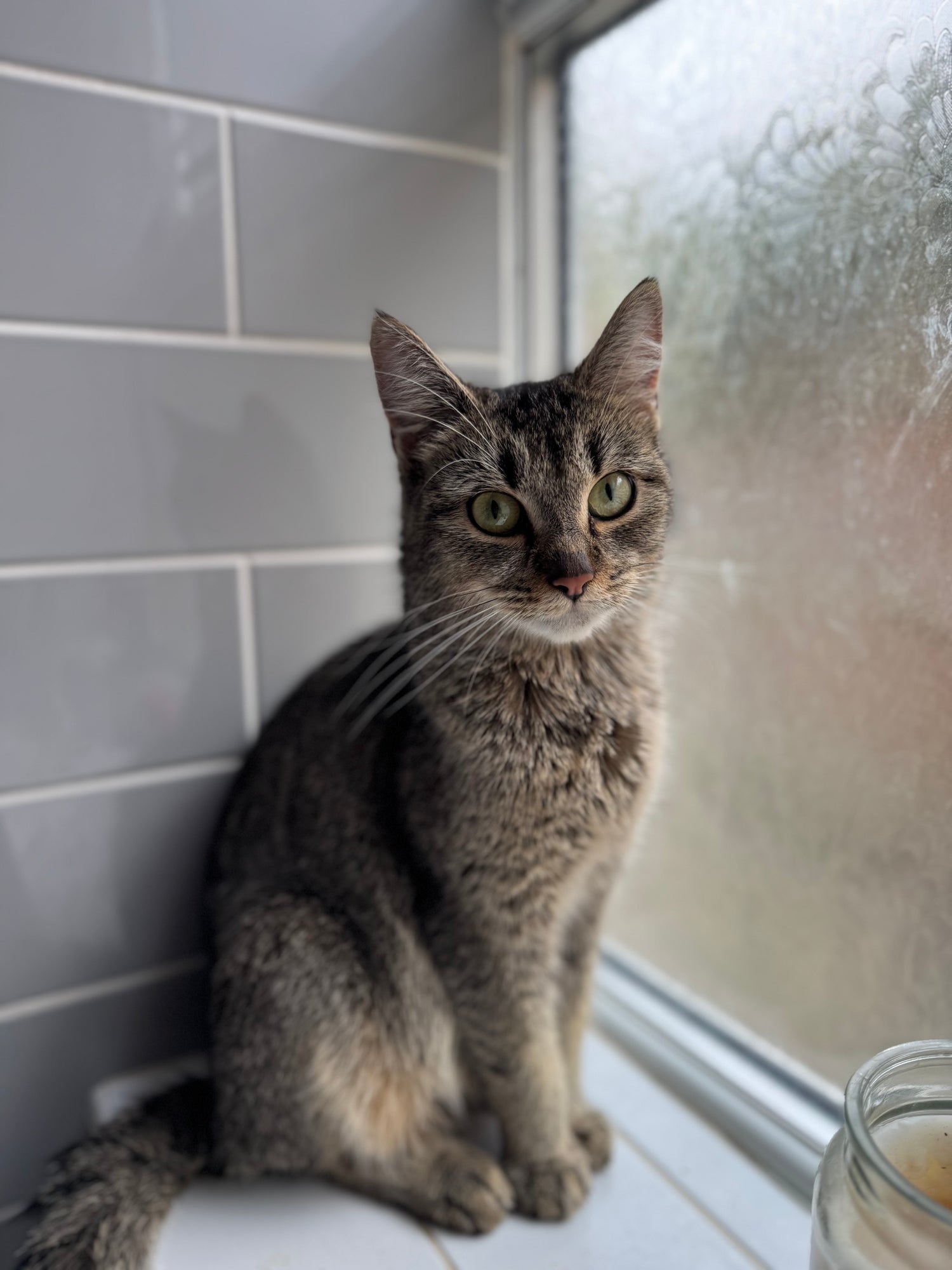 This elegant tabby is looking for her forever home, preferably one with a window ledge (so she can monitor neighbourhood gossip), a soft blanket (so she can judge you from maximum comfort), and a human servant or two (that’s you 👀).