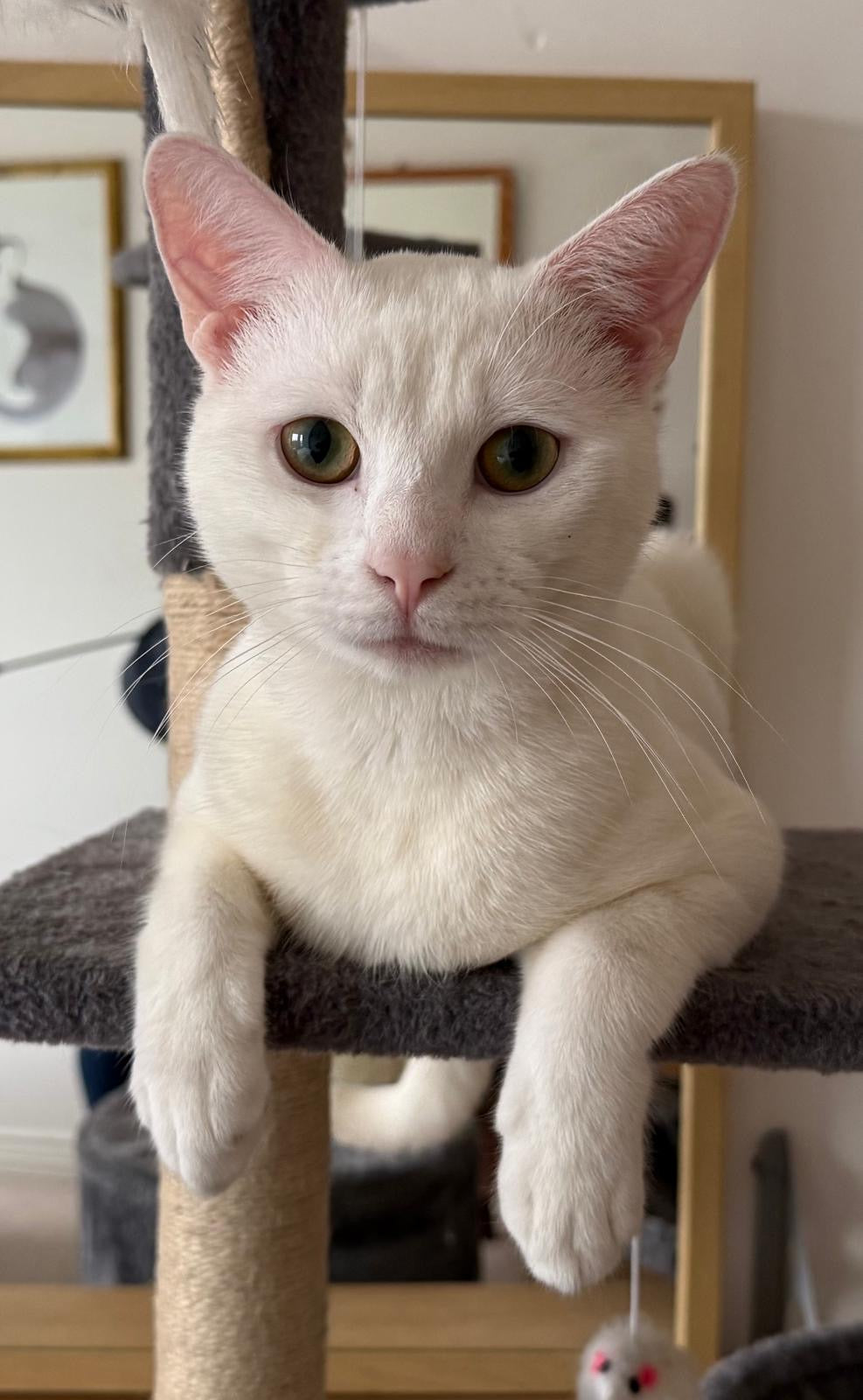 Opal is the type of cat who will investigate every cupboard, every shelf and possibly your soul. Mischief follows her around like a loyal assistant. A home with lots of toys, climbing spaces and ideally safe outdoor access would suit her perfectly.