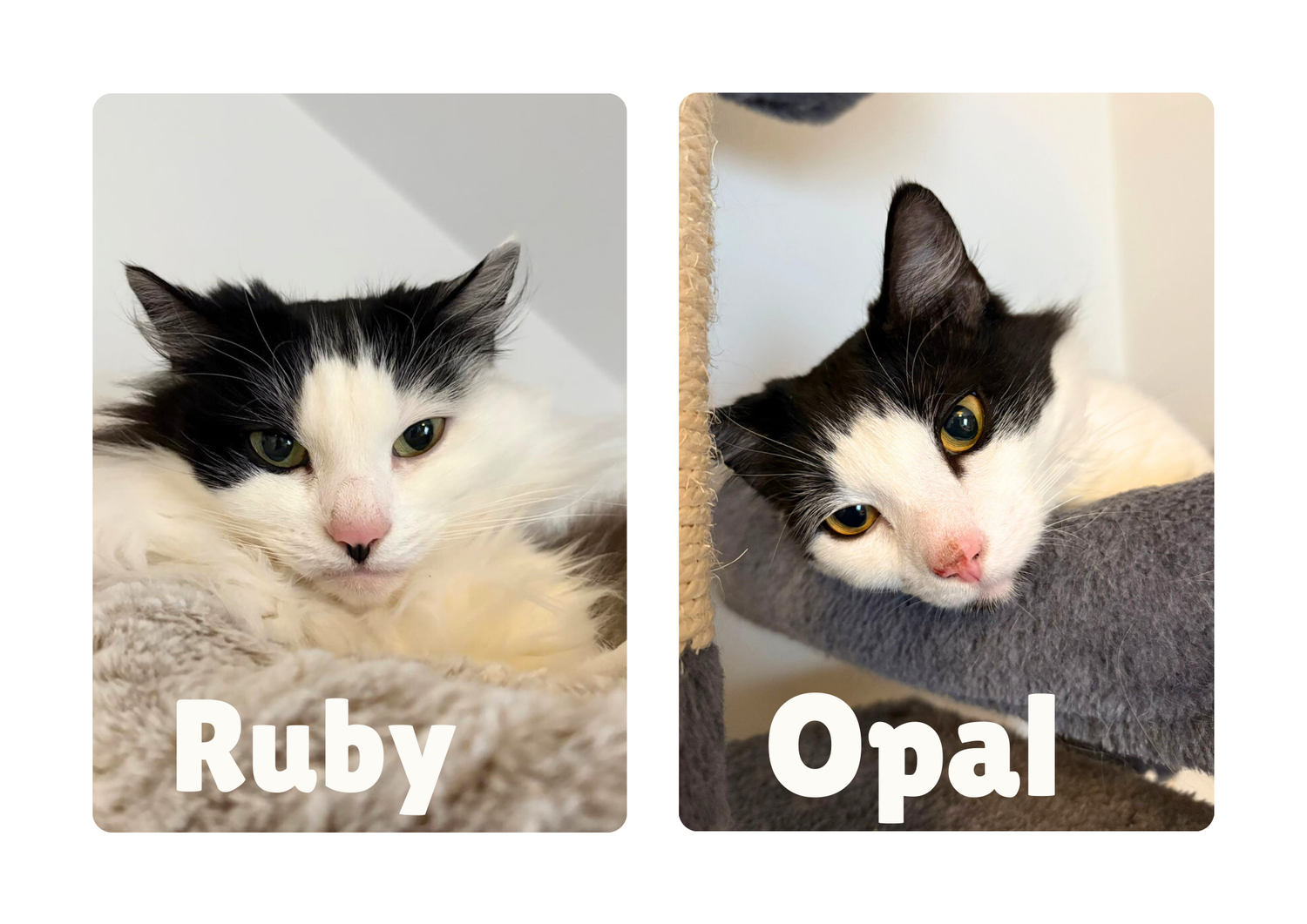 We originally tried them separately, but it turns out Opal had other plans and firmly decided Ruby is her emotional support grumpy mum. So together they shall remain.