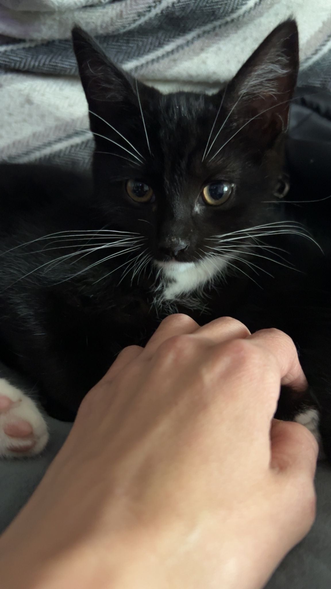 This semi-spicy little tuxedo is part snuggle-bug, part tiny panther plotting world domination.